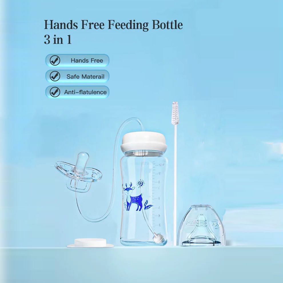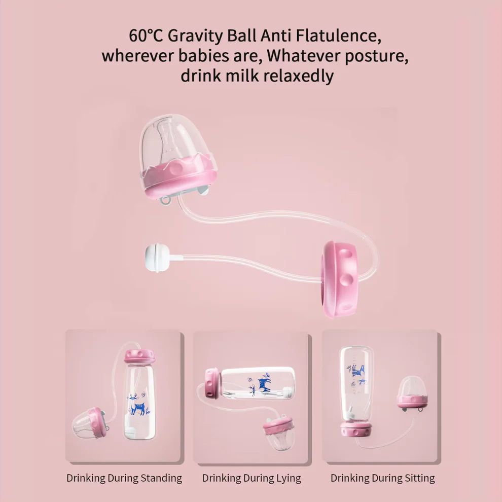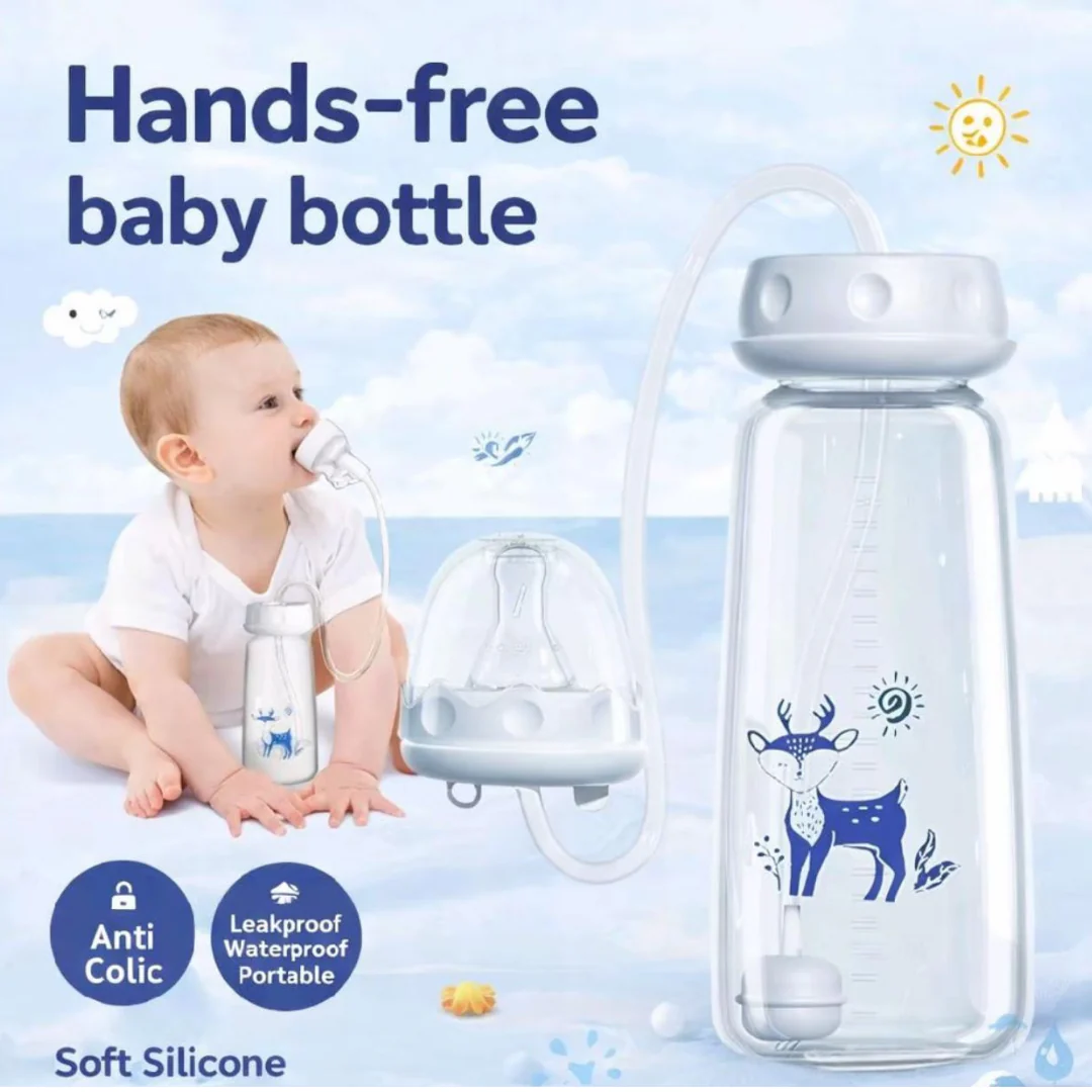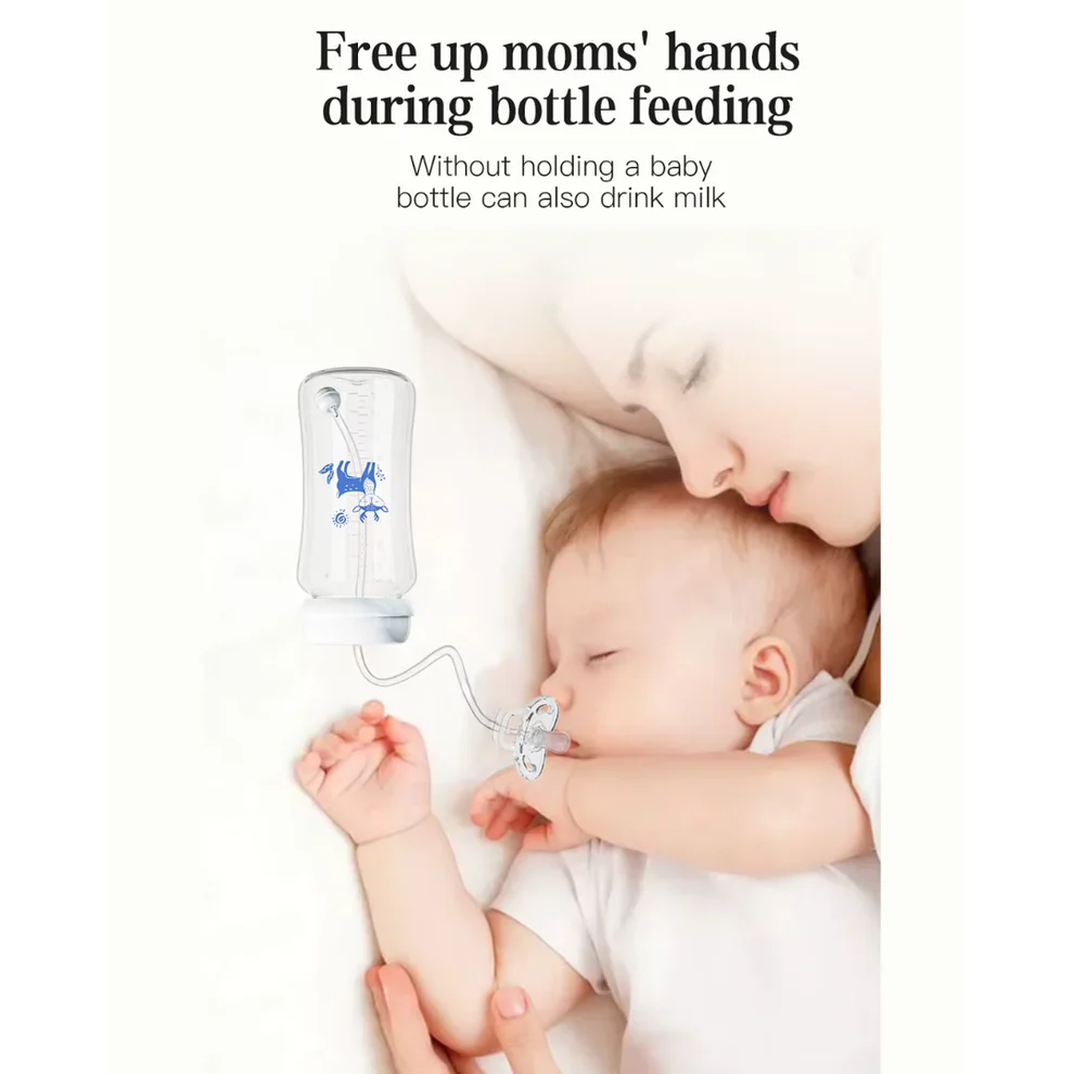 This baby bottle allows your baby to drink milk without holding it, giving moms more freedom and comfort while the baby feeds safely and relaxed.