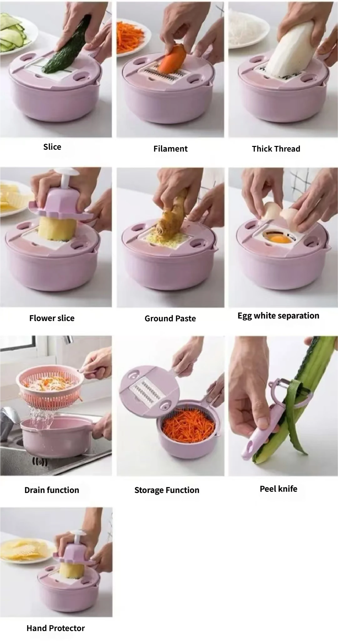 12in1 Household Manual Plastic Kitchen Vegetable Potato Peeler Grater Cutter Slicer