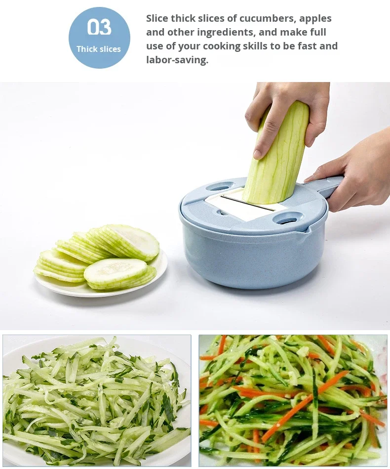 Multifunctional Design: Slices, grates, and cuts vegetables and fruits efficiently.
