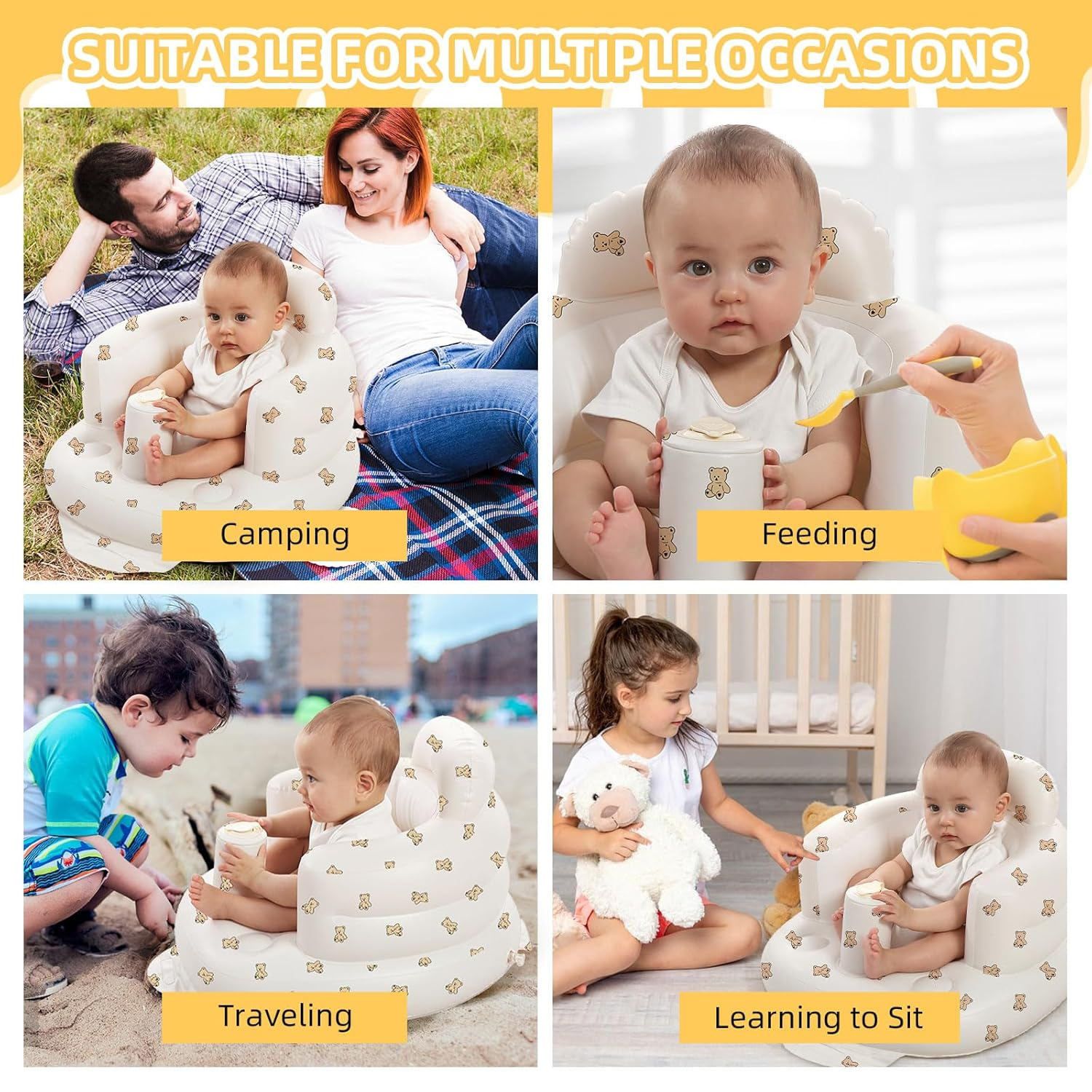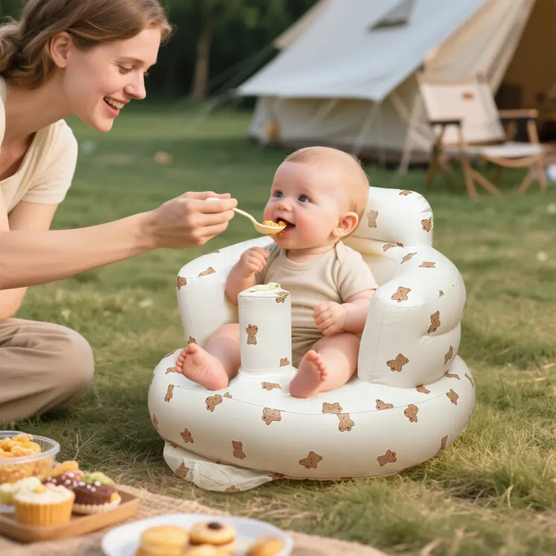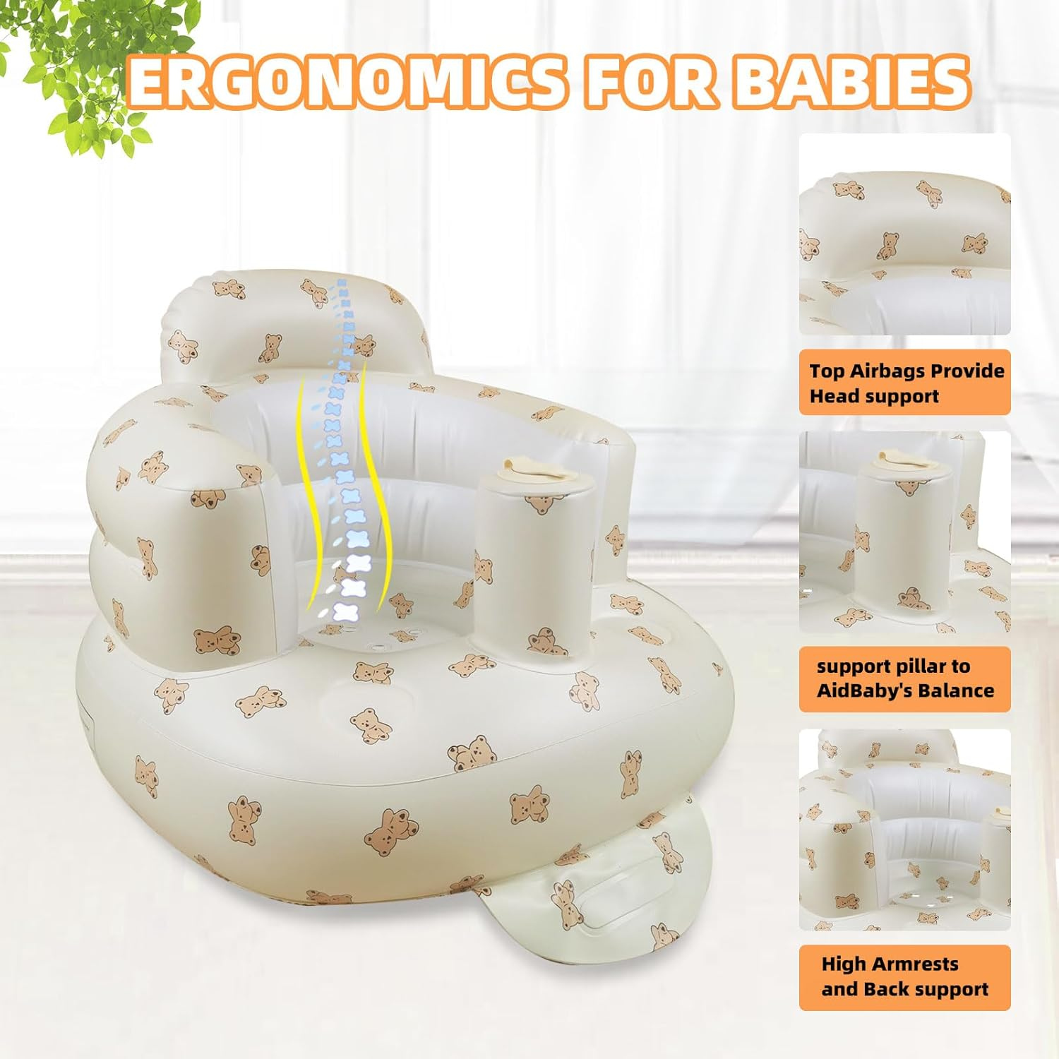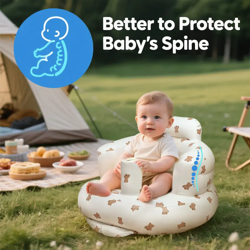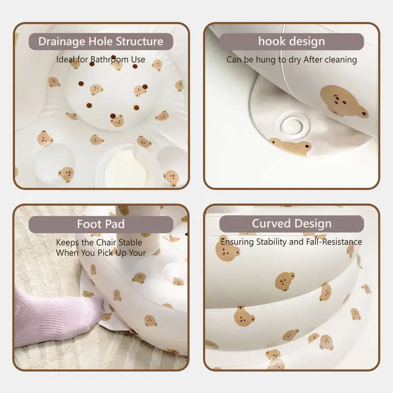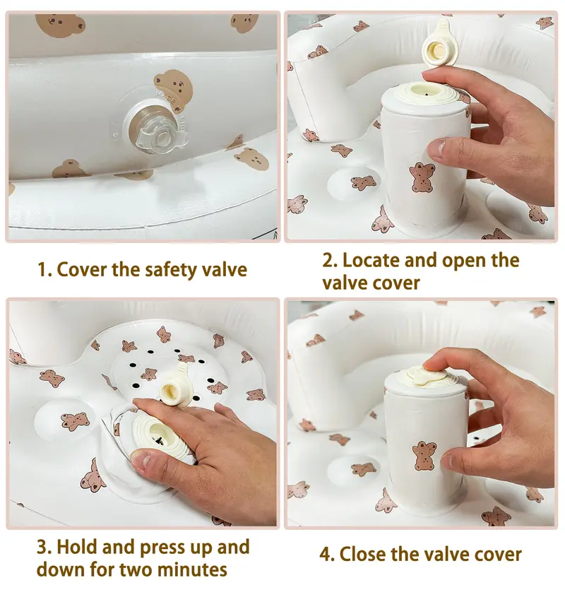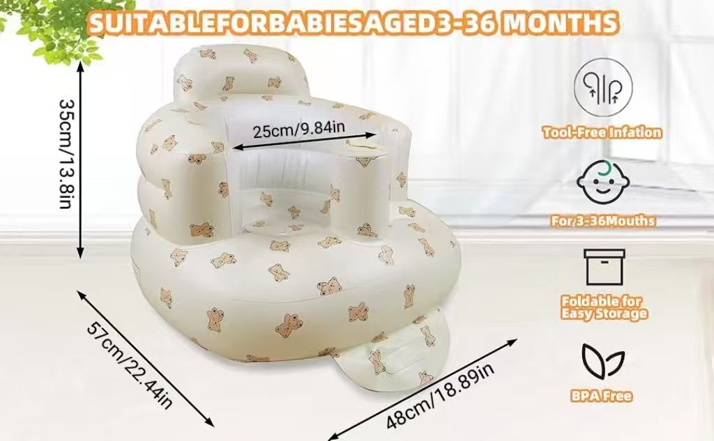 The LittleCloudToys Bear-Inspired Inflatable Baby Seat provides cozy, ergonomic support so infants (3 months+) can sit up confidently. Lightweight, portable and easy to wipe clean, it’s the perfect floor seat for tummy-time, playtime, and tiny explorers taking their first upright moments. Always use under adult supervision. ️Important: As the weather gets colder, the material may become stiffer during delivery. Before inflating, please allow the product to warm up to room temperature. Start by inflating it to 70–80%, wait a few minutes, and then add more air if needed to avoid any damage.