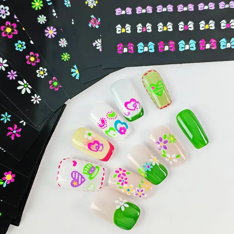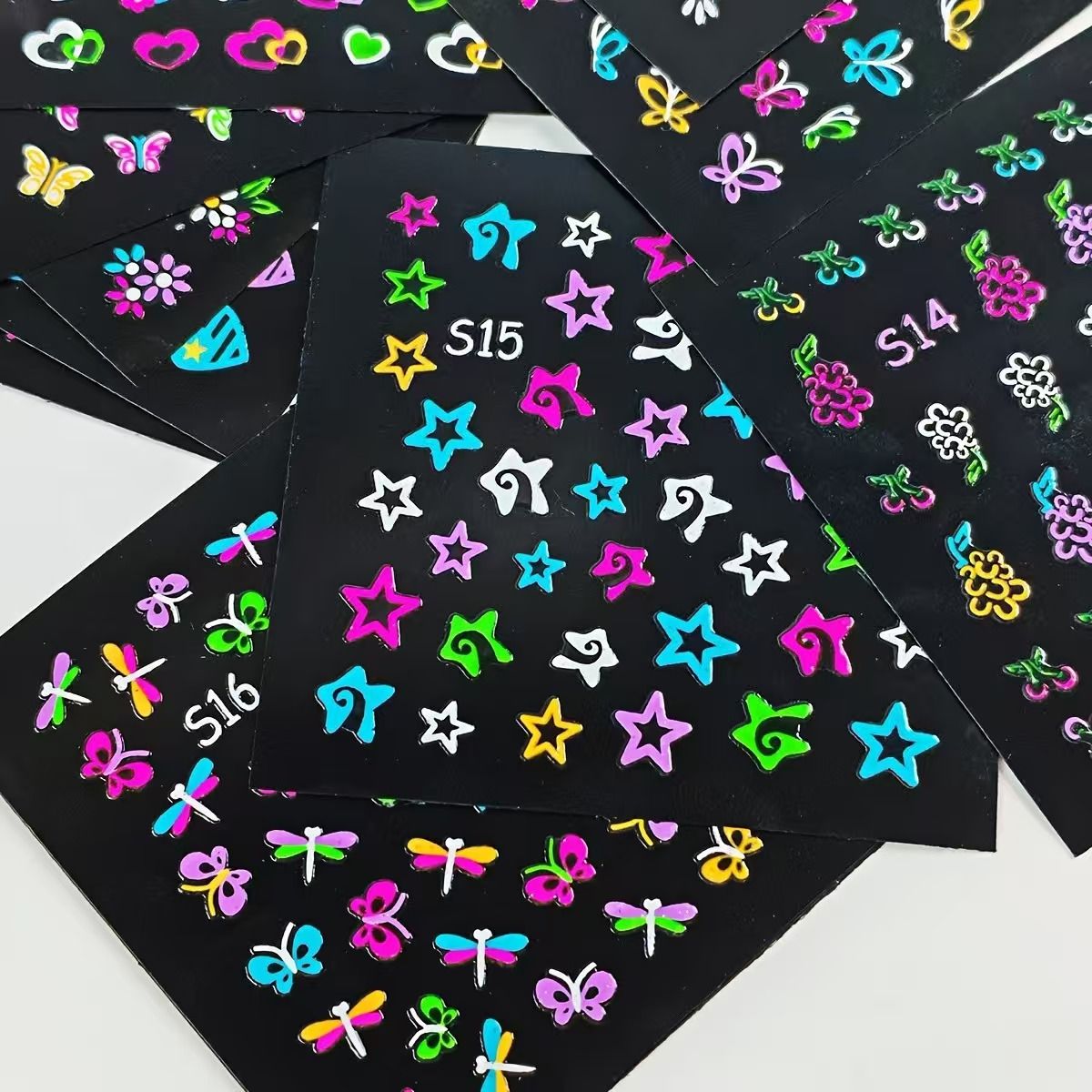 24 Sheets 3D Glow in The Dark Neon Nail Stickers Glittery Glossy Self-Adhesive Nail Art Stickers Girl DIY