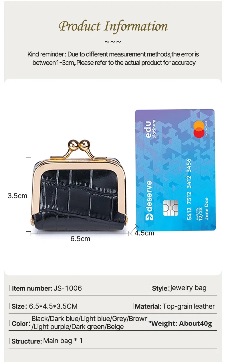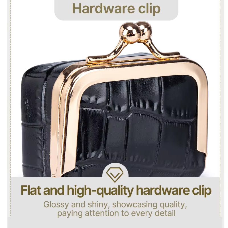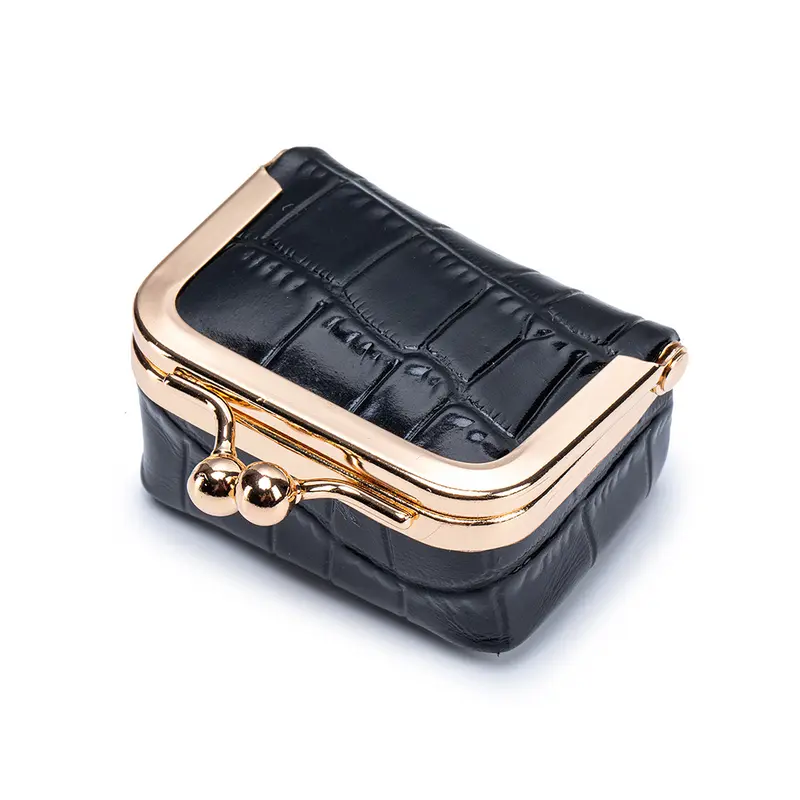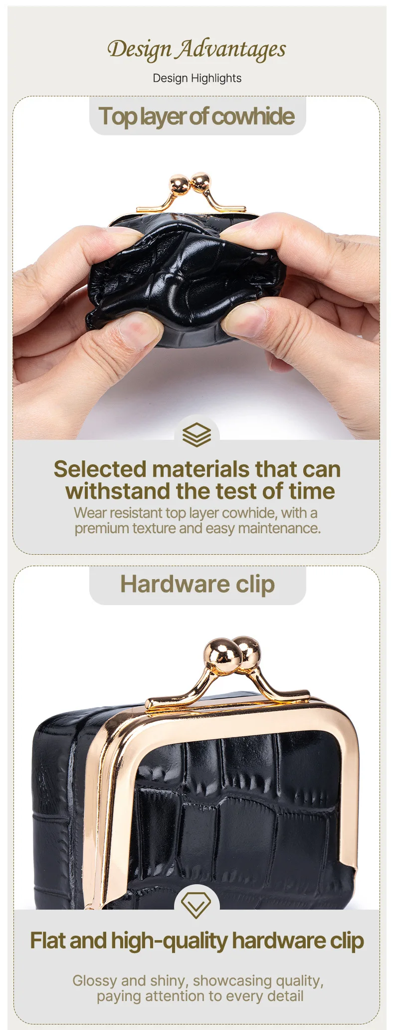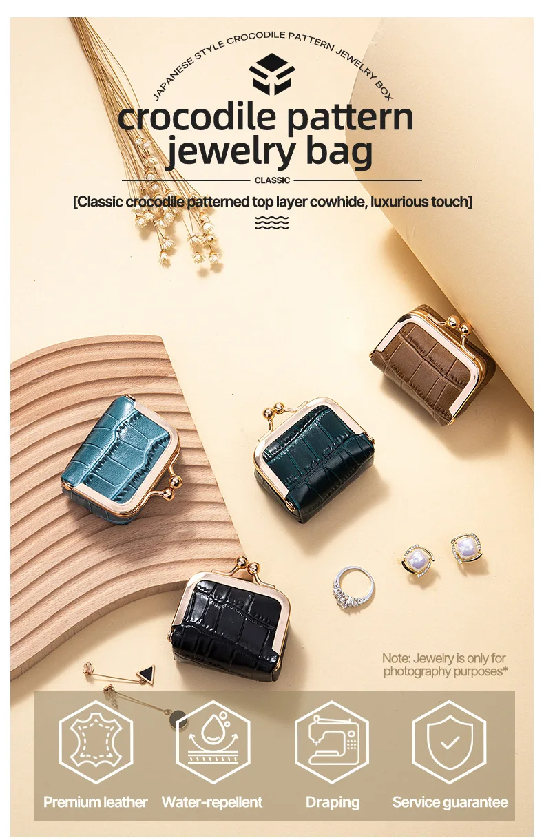 Genuine Cowhide Leather Mini Kiss-Lock Pouch (Crocodile Pattern)
