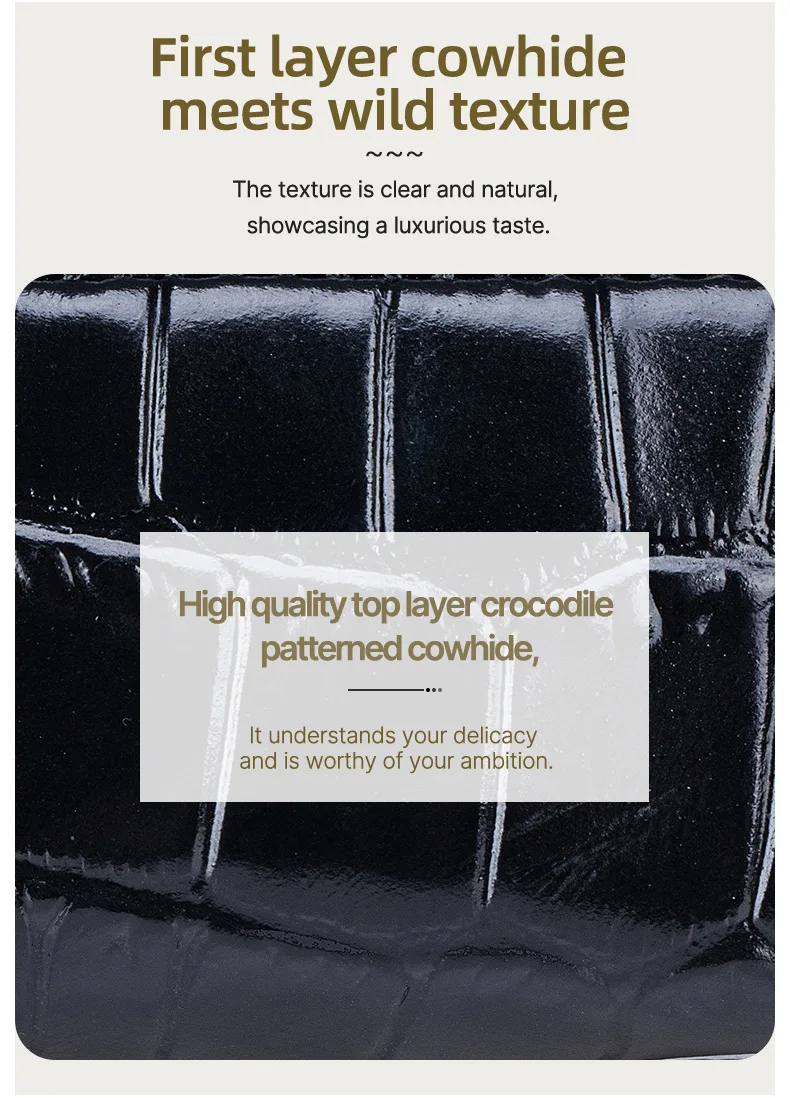 ✨ Why This Croc-Pattern Cowhide Pouch Stands OutGenuine Top-Grain Cowhide Leather (Crocodile Embossed)We usepremium top-grain cowhide(not real crocodile leather!)-embossed with a sleek crocodile pattern for that luxury, high-end look.