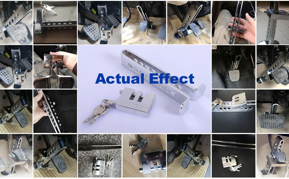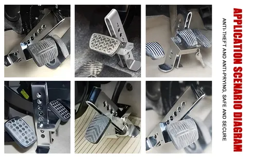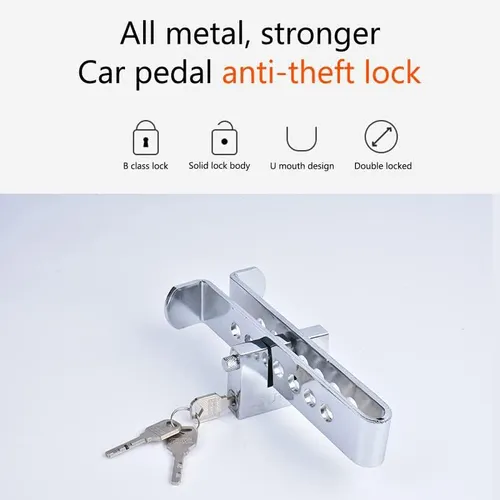 Anti-Theft Clutch Lock Brake LockFeaturesMore recure backup:3 spare keys to prevent loss.Adjustable with 8 keyholes:This brake pedal lock can be adjusted for different models.Easy to lock and save valuable timeWaterproof and rustproof materian:Exquisite workmanship, no rust and long service life, can fully protect the safety of your car.