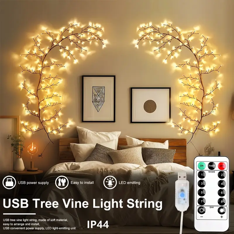 USB Tree Vine Wall Light – Flexible LED Branch String for Bedroom & Home Decor