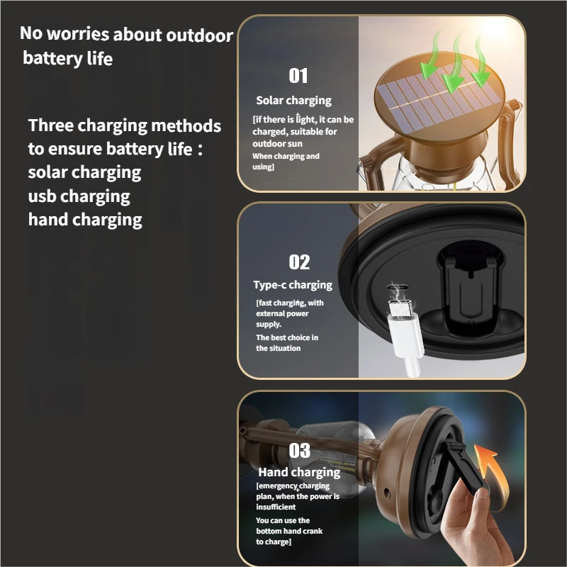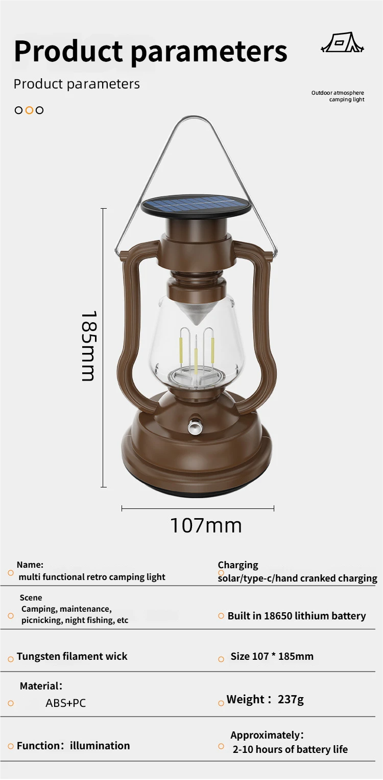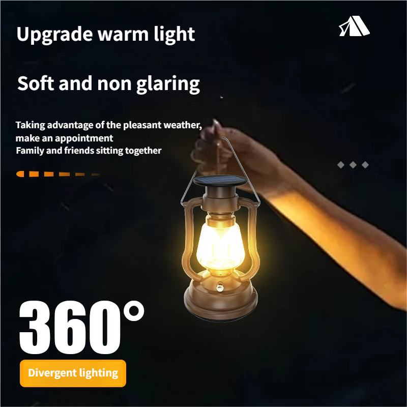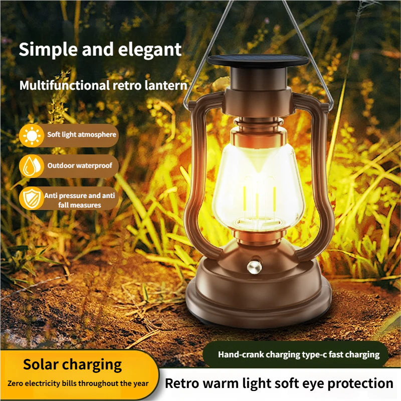 3-in-1 Solar Retro Camping Lantern – Waterproof, Long-Lasting Emergency & Outdoor Lighting