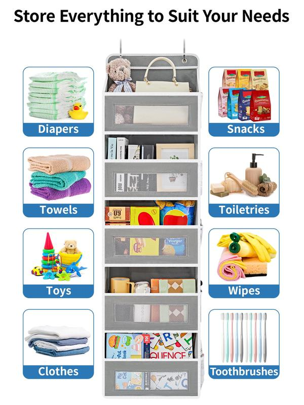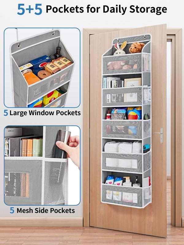 Double storage space: This wall-mounted storage unit is equipped with 5 spacious pockets and 5 additional mesh side pockets, which can instantly expand the storage space. The large pockets are convenient for quick access, and our closet door storage unit provides a larger storage box and a 4.3-inch gap, making it easy to access. The transparent mesh design on each pocket ensures that you can easily find the items you need.