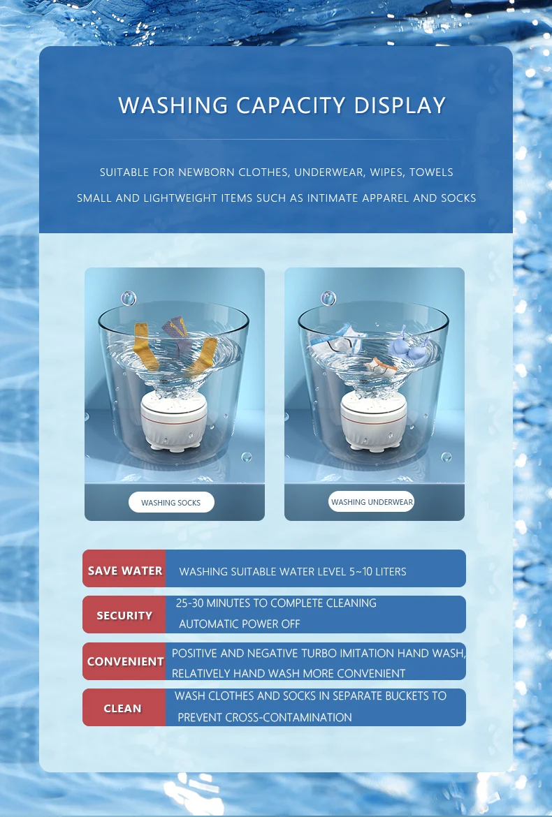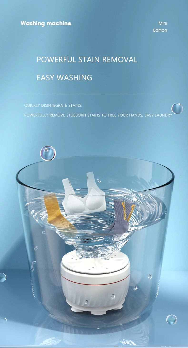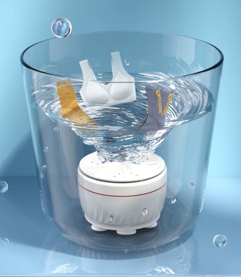 This portable ultrasonic washer cleans underwear, baby clothes, masks, towels, dishes & more using powerful cavitation technology.