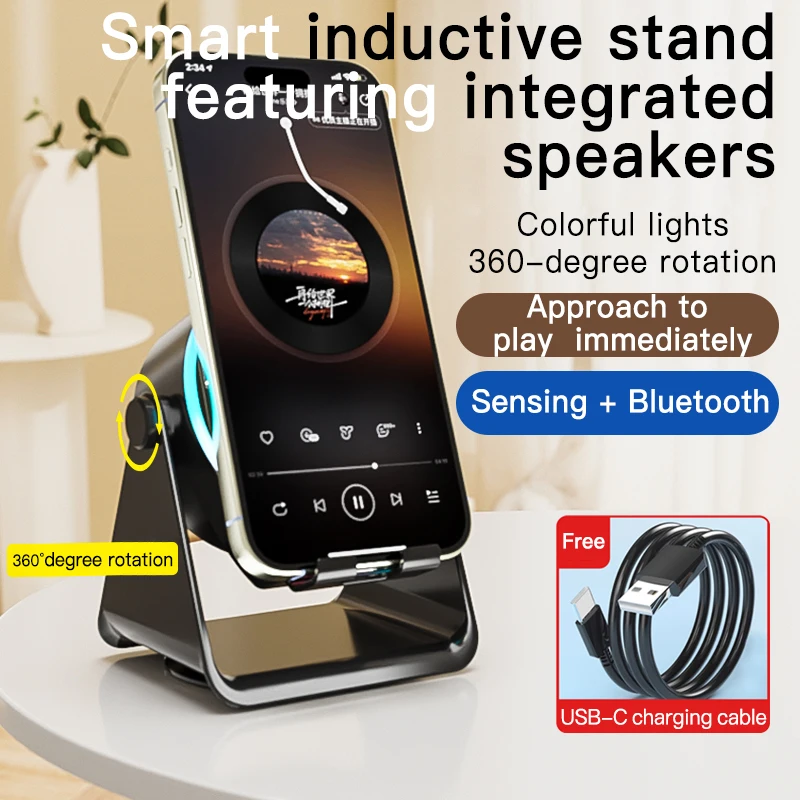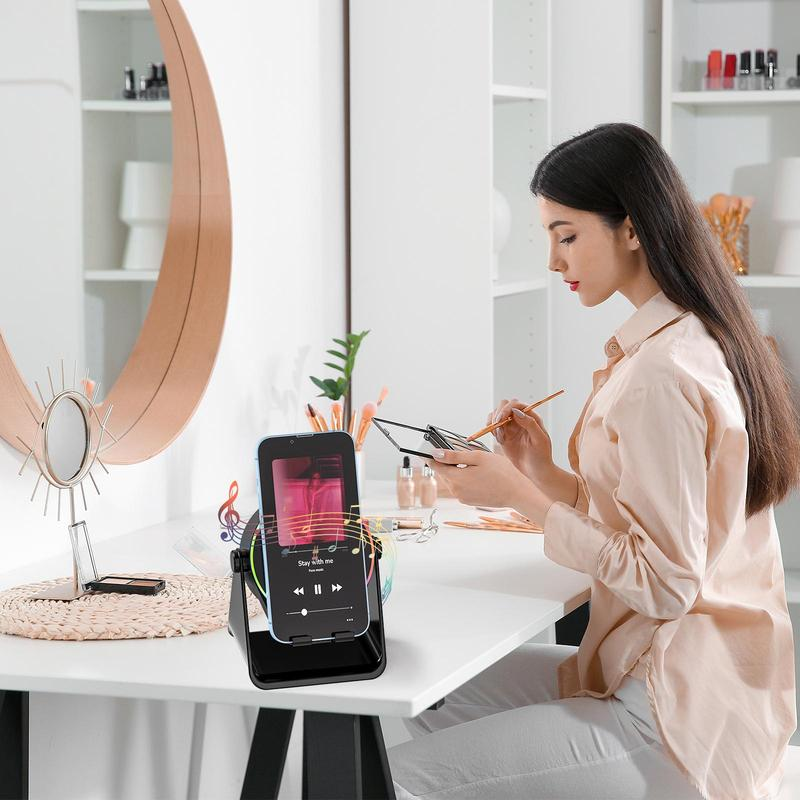 Wireless Induction Speaker Stand – 360° Sound & Light Experience